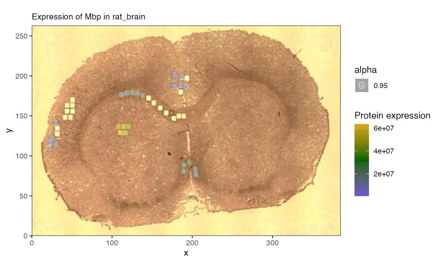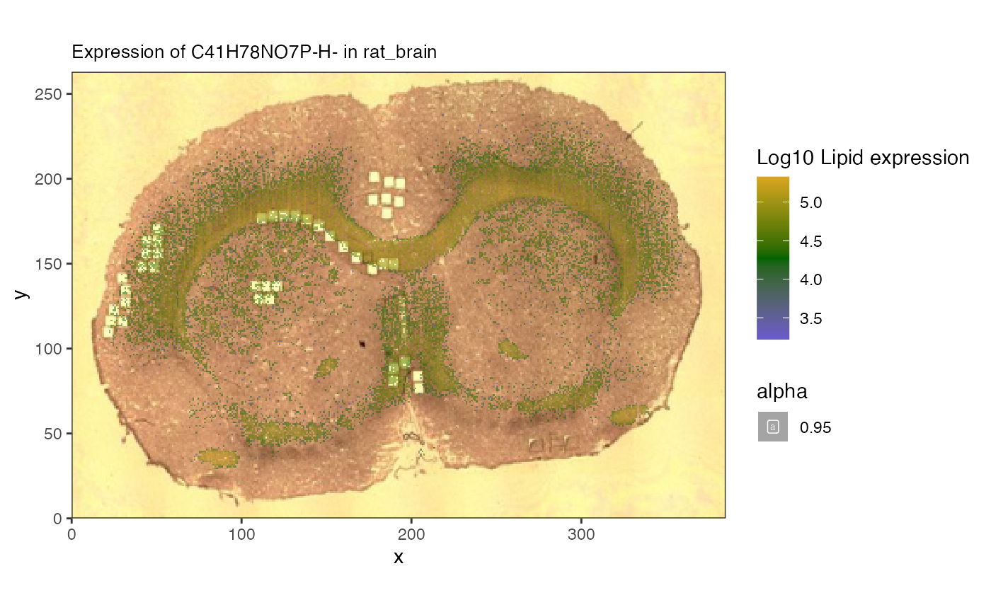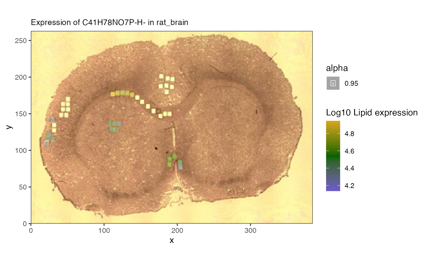 The goal of this vignette is to showcase integration between two different omes in the same spatial context. For this we use a dataset from sections of rat brain measured via mass spetrometry imaging (MSI) to identify lipidomic measurements alongside proteomics from regions of interest from Vandergrift et al.